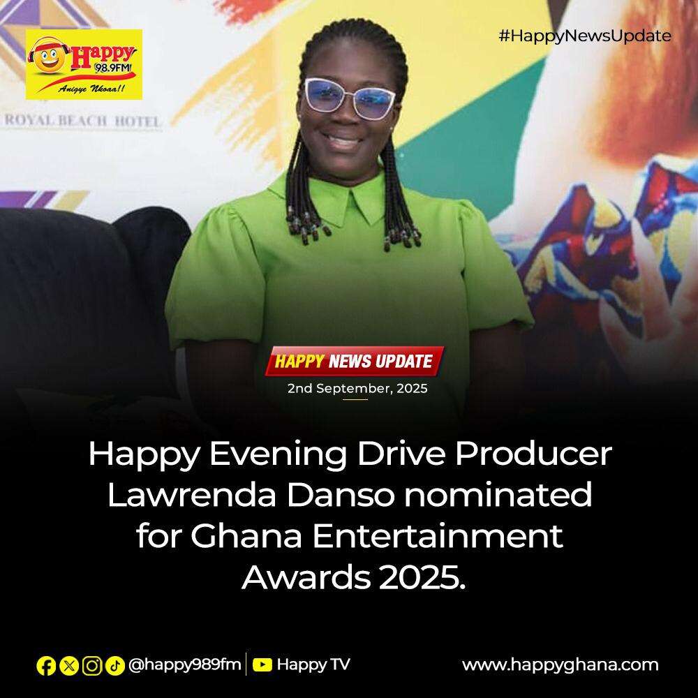 Veteran media producer Lawrenda Danso has been nominated for the coveted “Media Producer of the Year” award at the Ghana Entertainment Awards USA 2025, scheduled for September 27th in New Jersey. The nomination recognizes her exceptional work as the producer of Happy Evening Drive, Happy 98.9FM’s flagship radio program.