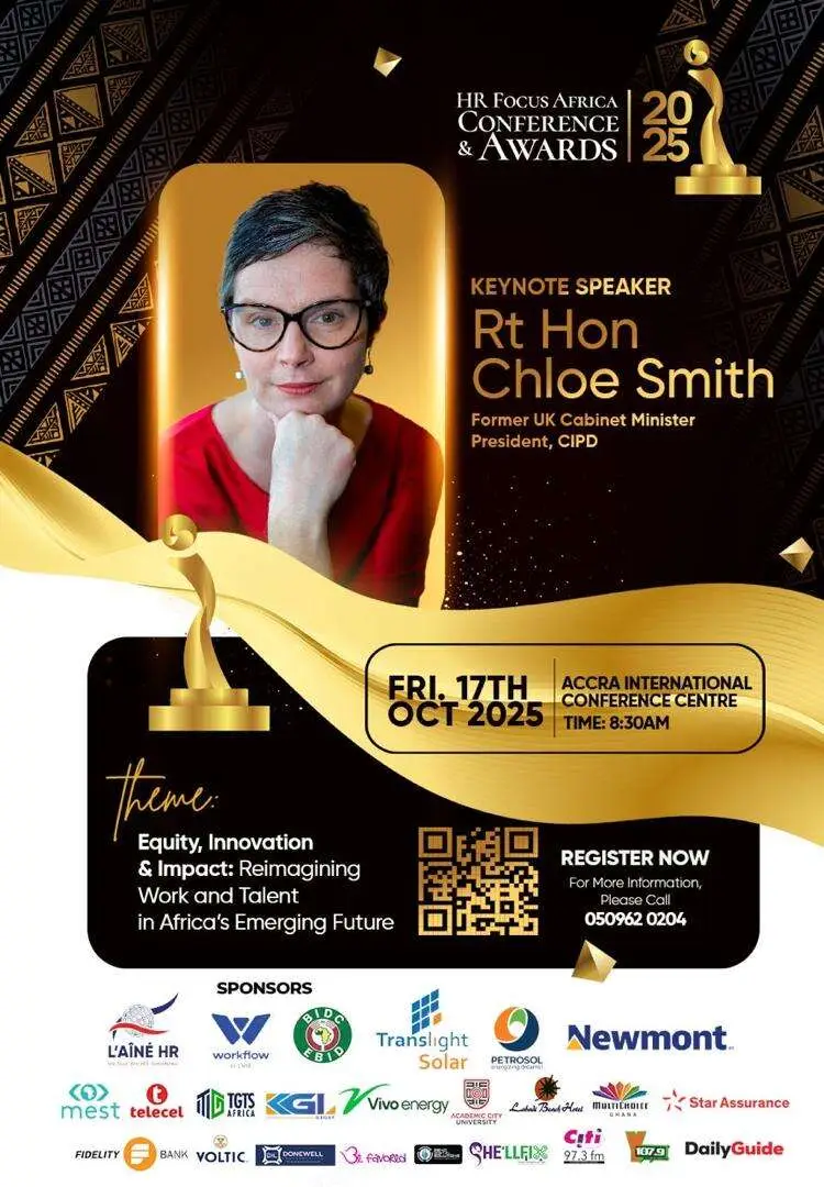 Rt Hon Chloe Smith, President of the Chartered Institute of Personnel and Development and former UK Cabinet Minister, will address HR professionals and business leaders in Ghana at the HR Focus Africa Conference and Awards on Friday, 17th October 2025 at the Accra International Conference Centre.