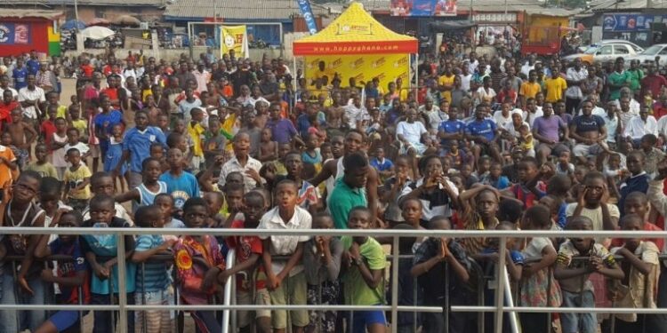 Scores of football fans trooped to the Bukom Square as Ghana’s number one sports station, Happy FM and Cowbell Ghana brought the Ghana vs Mali and Egypt vs Uganda AFCON 2017 clashes to the people in Ghana’s home of boxing.