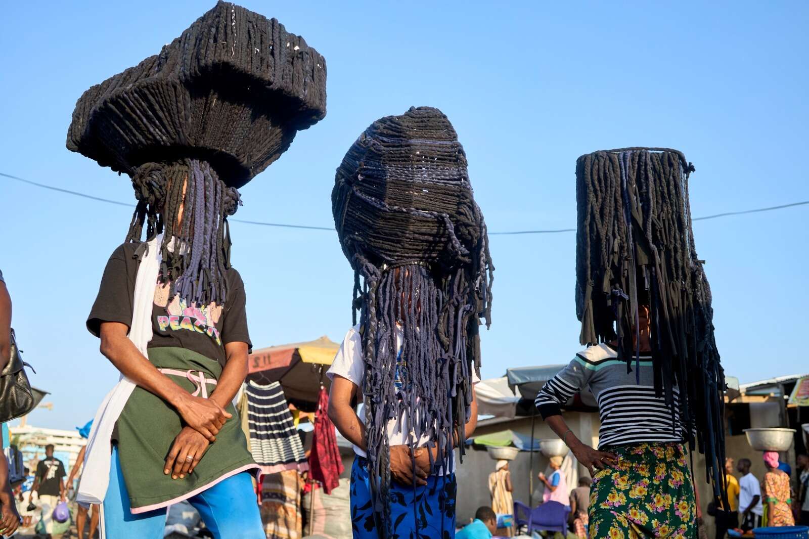 A particularly meaningful part of the project involves the kayayei—women head porters, many of whom have migrated from northern Ghana seeking work. The scale of the secondhand clothing trade bears heavily, literally and figuratively, on their bodies. Five of them are currently working with the artist to weave sculptural headpieces that reflect their role and experience within the market. Beyond this phase, the project gestures toward a broader conversation: how can we imagine and support alternatives to this physically demanding labor?