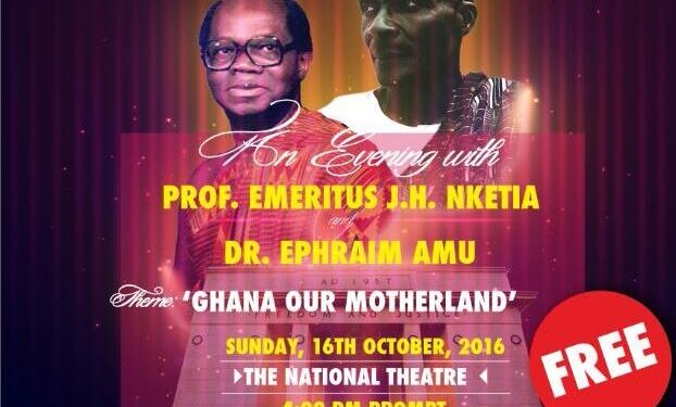 In an event dubbed, “An Evening with Dr. Ephraim Amu & Emeritus Prof. Nketia”, the Harmonious Chorale, the resident choir of the Salt and Light Ministries will perform the works of the two legendary composers. The programme is aimed at celebrating the legendary composers and role models of younger musicians and participation in the event is free. It is scheduled to be held at the National Theatre in Accra.