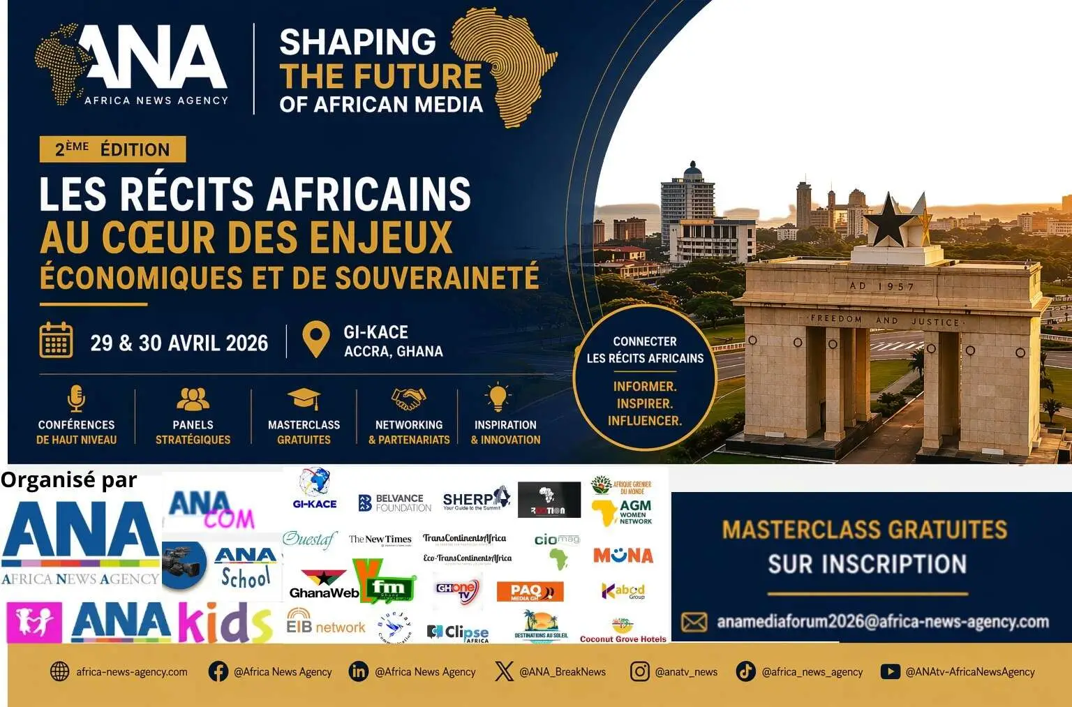 On April 29 and 30, 2026, Accra will host the second edition of Shaping the Future of African Media, a pan-African event dedicated to the future of the continent’s media. Organized at GI-KACE, this gathering will bring together media executives, journalists, economists, business leaders, public and institutional officials, investors, and creators around a central theme: African narratives as an economic lever and a tool of sovereignty.