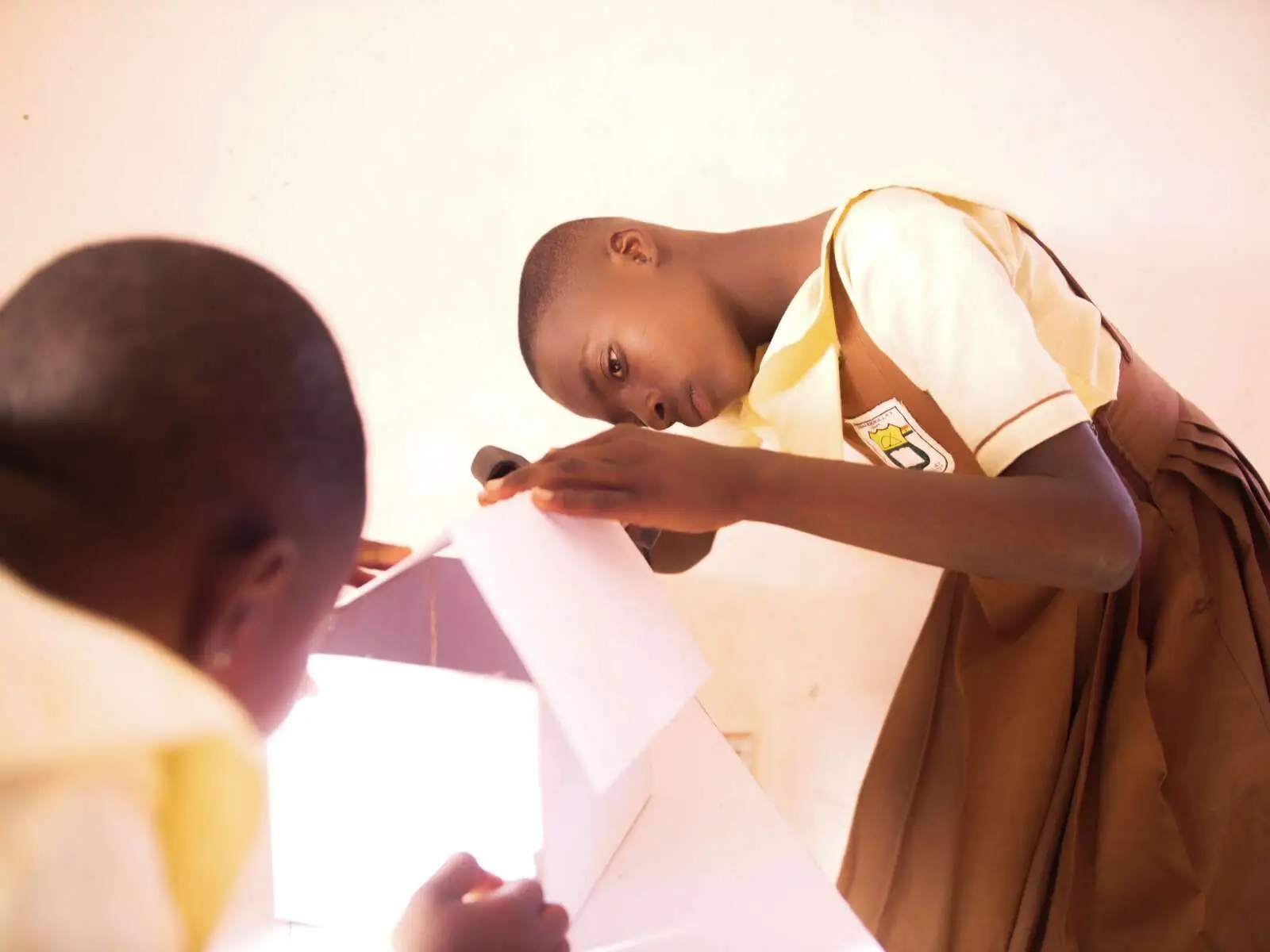 At the Commission Information Centre in Jirapa, one of two digital labs hosting the after-school programme in the Upper West municipality, 12-year-old Miltiades and her teammates are refining their final project ahead of graduation: a bushfire-fighting robot built to respond quickly when fires break out in vulnerable areas.