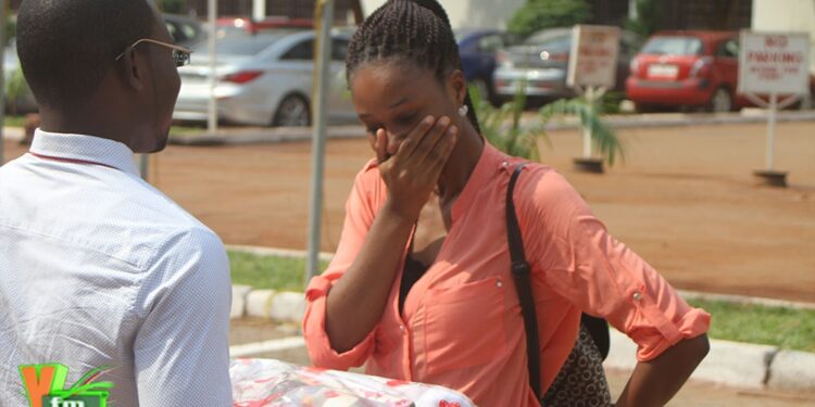Wise after entering the Marina Shopping Mall “Red Balloon of LOVE” got the fine opportunity to propose to his #Valentine Chrissy at the Elizabeth Sey Hall on Legon Campus.