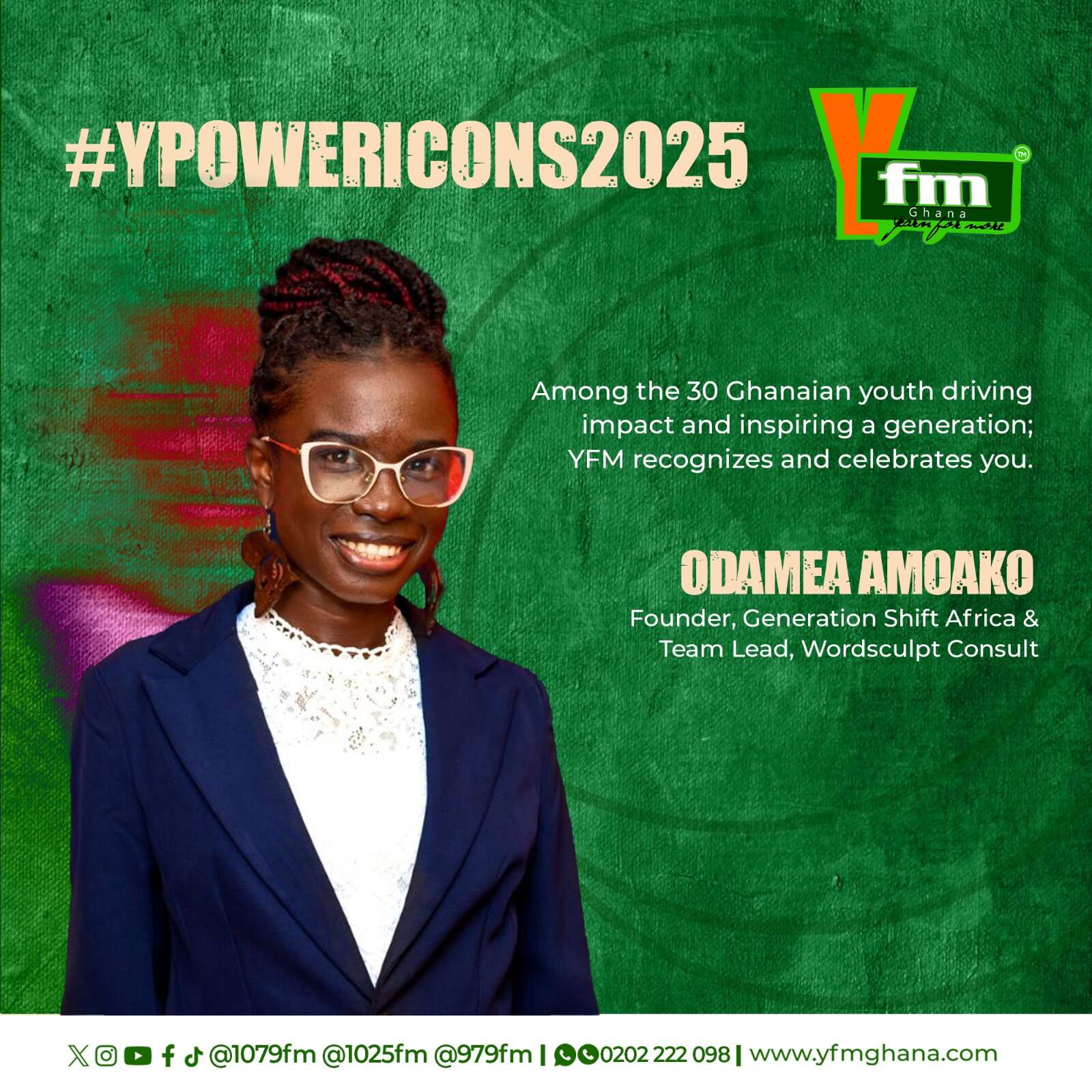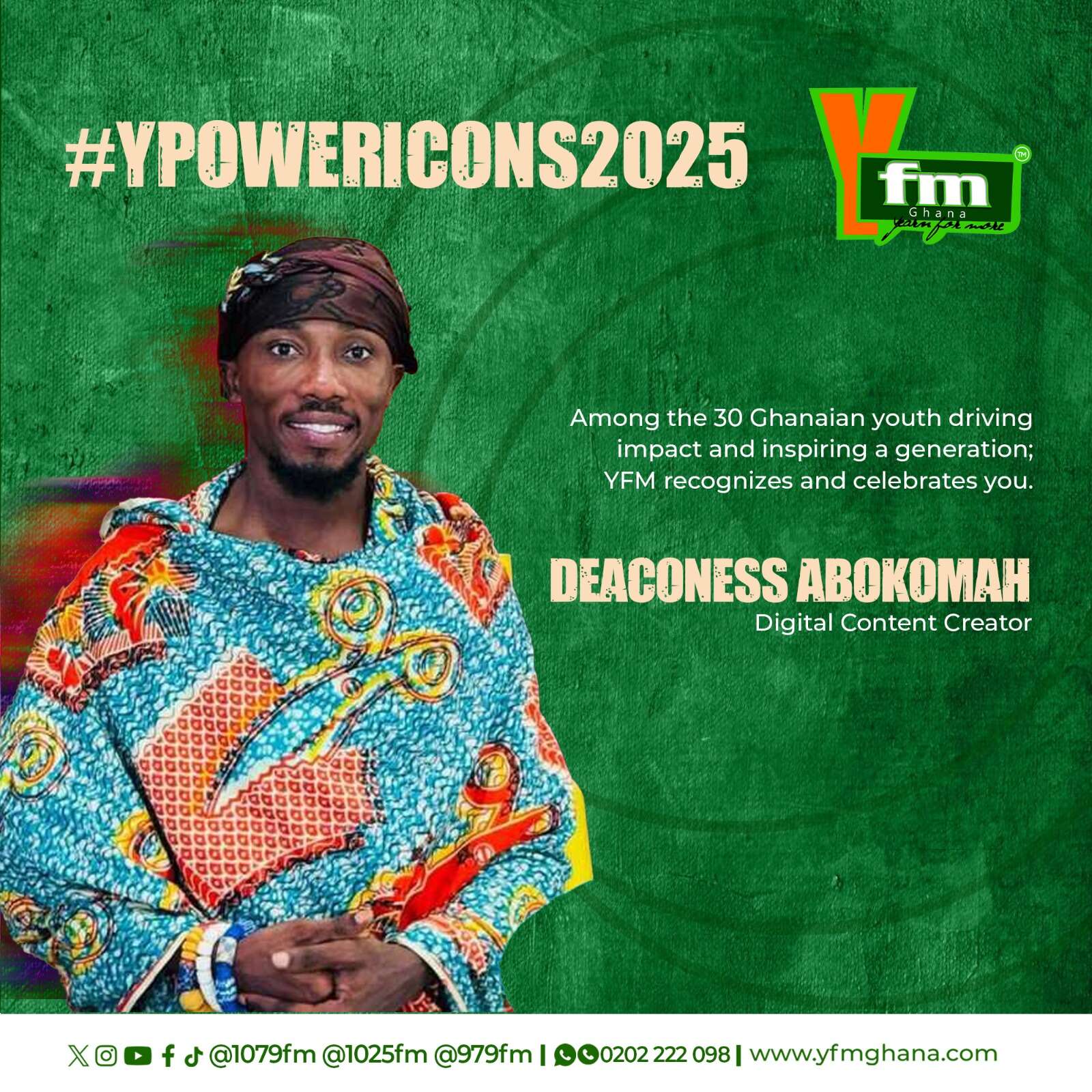 Follow the journey: #YPOWERICONS2025 across YFM’s Triangle Y107.9FM Accra, Y102.5FM Kumasi, and Y97.9FM Takoradi.