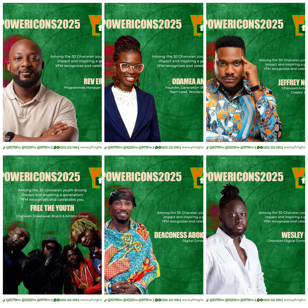 The #YPOWERICONS2025 initiative continues until Friday, with YFM unveiling six exceptional young people daily across all platforms. Each group represents diverse sectors including entertainment, technology, business, politics, and social development, showcasing the breadth of talent driving Ghana’s future.