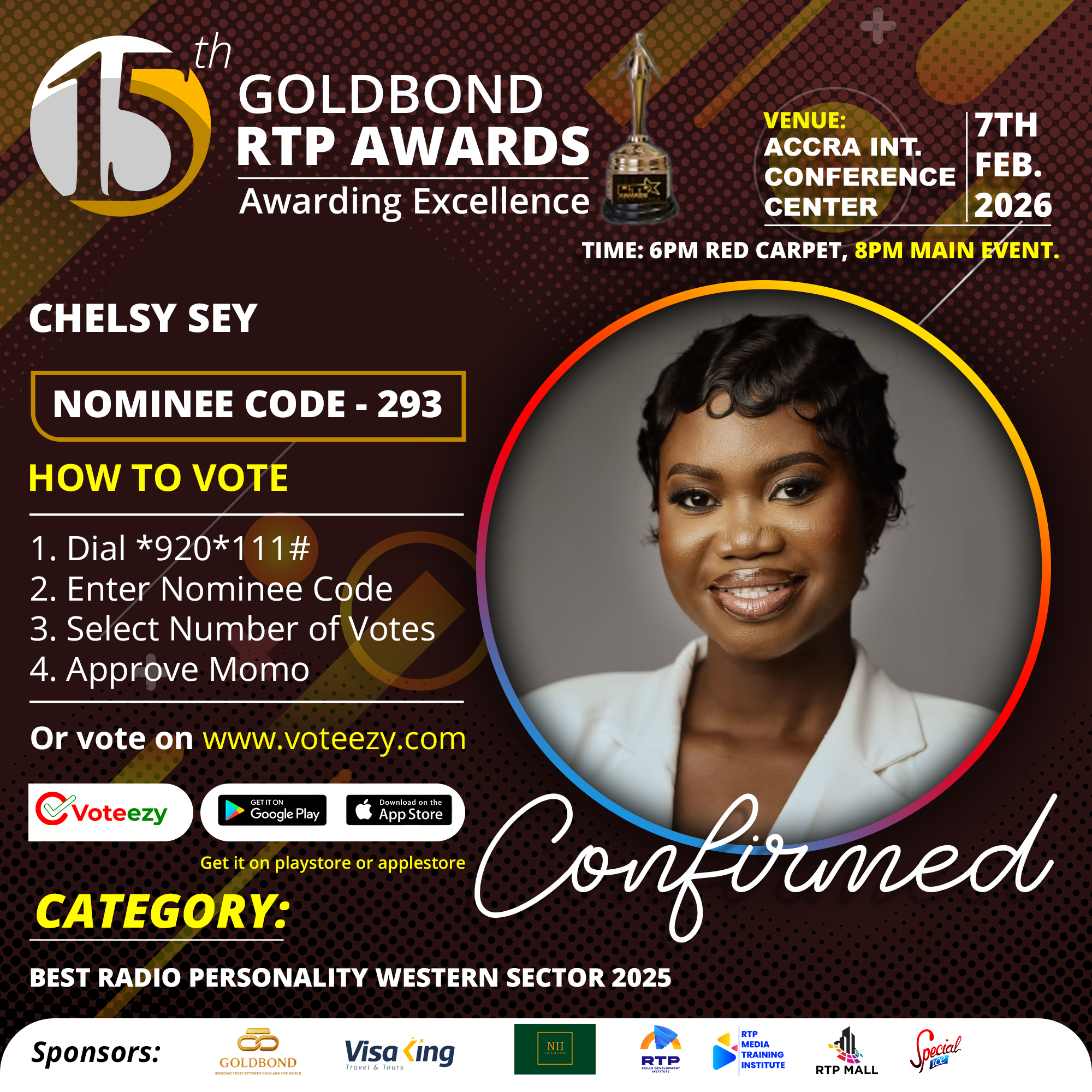 YFM Takoradi’s on-air star, Chelsy Sey, has been nominated for the Best Radio Personality – Western Sector at the 15th Goldbond RTP Awards.
